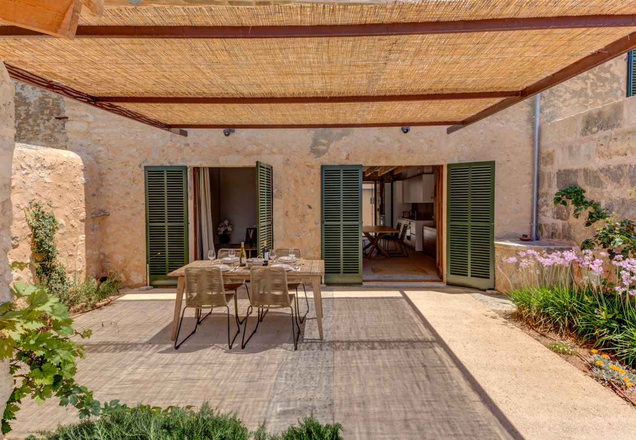 Im Erdgeschoss die komplett ausgestattete Küche, der Essbereich mit Esstisch und sechs Sitzgelegenheiten, weiterhin eine gemütliche Sofa-Ecke. Eines der drei Schlafzimmer der Can Cunso 18 befindet sich im Erdgeschoss, die beiden weiteren Schlafzimmer befinden sich in der oberen Etage. Alle Schlafzimmer verfügen über ihr eigenes in Suite Badezimmer. Klimaanlage in allen Räumen. Wifi-Internet.
