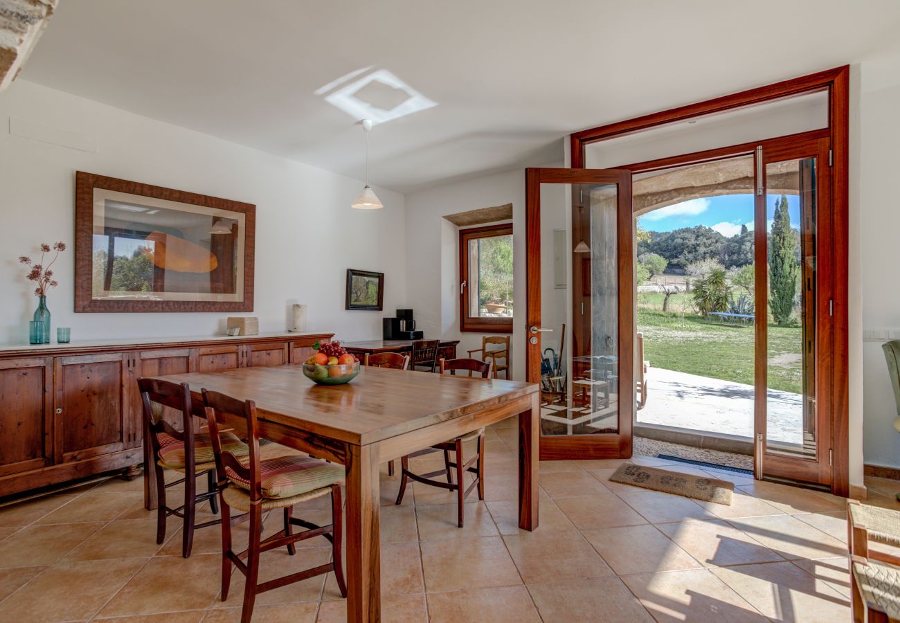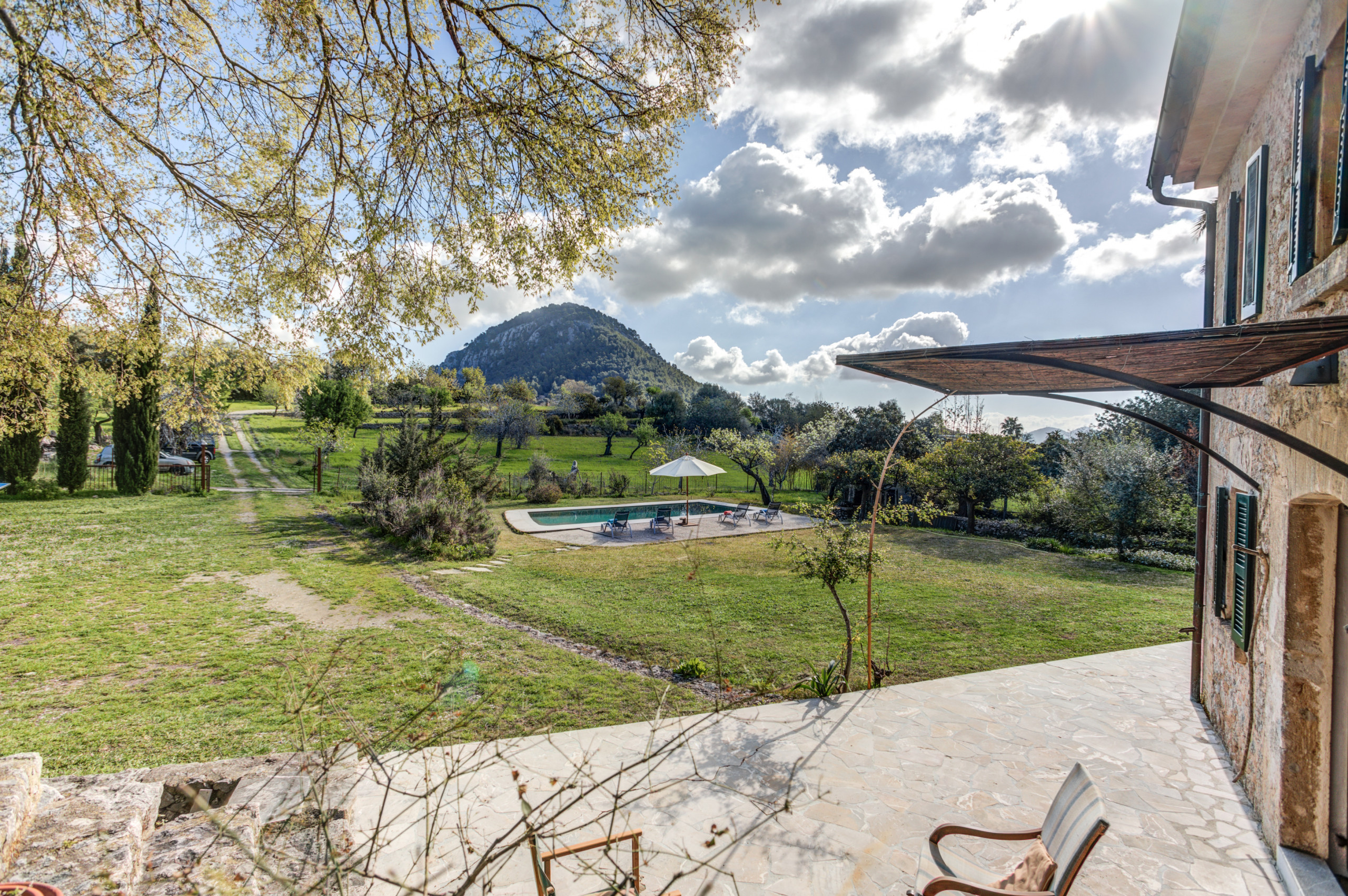 Auf einen Blick | Finca Grundstück 30.000 m2, Wfl Haus 170 m2 | 2 Doppelschlafzimmer, 2 Badezimmer, Küche voll ausgestattet, Esszimmer, Wohnzimmer | Terrasse mit Esstisch, Outdoor Sofa Set, Pool mit Salzwasser (haut und augenschonend) | Blick auf Berge und den emblematischen Hausberg von Pollença 'Puig de Maria' | Finca nur 1 Km von Pollença entfernt.