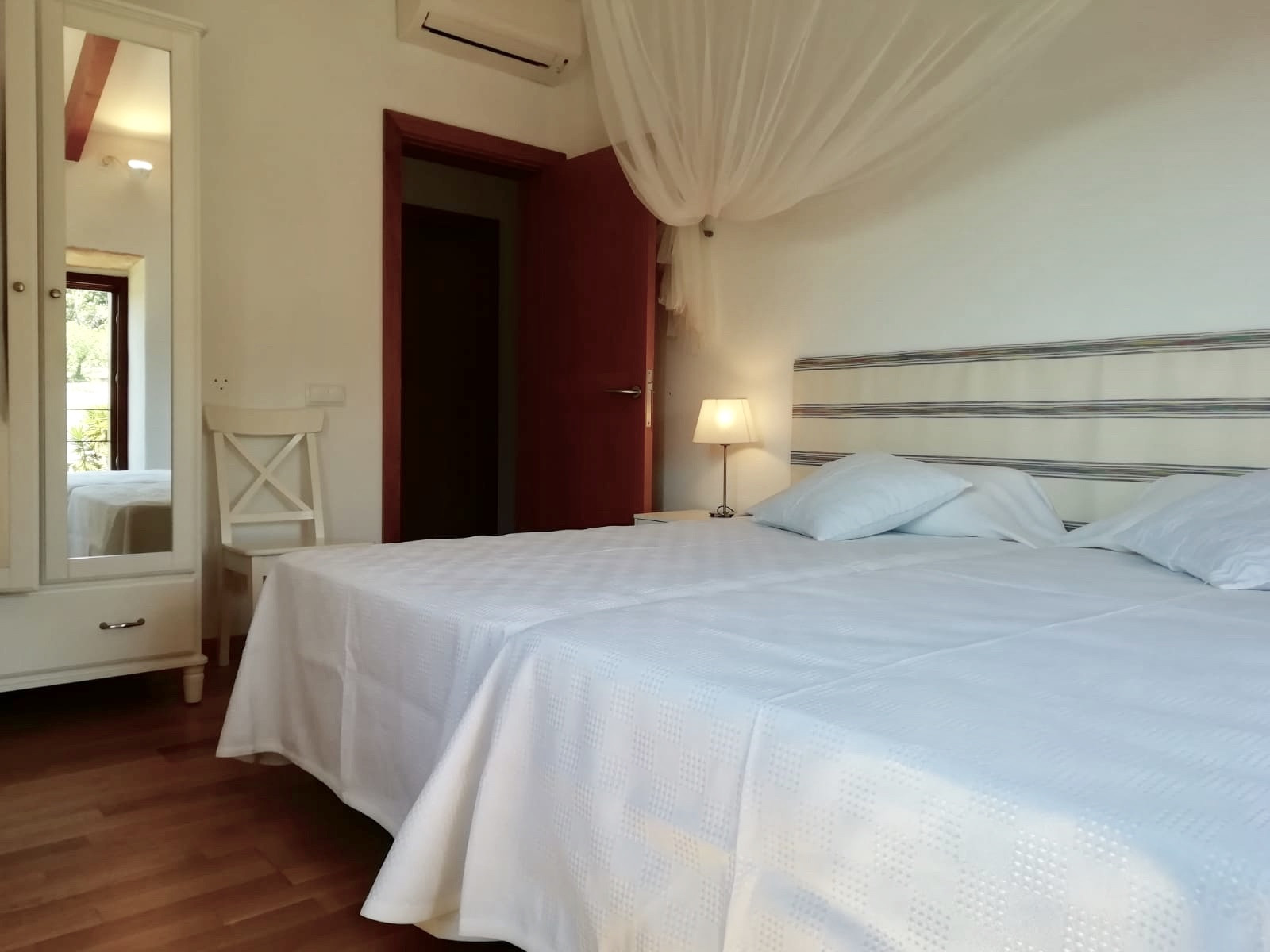 Über zwei Gatter und durch eine herrlich naturbelassene Landschaft gelangt man zum Hauseingang mit massiver Holztür. Der Aussenbereich ist grosszügig angelegt. Rechterhand findet man einen romantischen Sitzplatz unter einem Eichenbaum. Linkerhand und umrandet von einem kleinen Wald und Wiesen die komplett ausgestattete Terrasse und der 8x4 m2 Pool mit hautschonendem Salzwasser. Am Pool gibt es 4 Sonnenliegen und einen Sonnenschirm. Der Terrassenbereich verfügt über einen Esstisch mit Sitzgelegenheit für bis zu 6 Personen, einen Weber Aussengrill für Holzkohle und ein gemütliches Sofa Set. Über die massive Holztür gelangt man in den Eingangsbereich des Hauses, rechts der Essbereich mit tollem Holztisch, linkerhand der Wohnzimmer-Bereich mit Sofa und Sessel. Geradaus weiter gelangt man in die geräumige voll ausgestattete Küche mit einem zusätzlichen Esstisch für bis zu vier Personen. Die Terrasse kann man sowohl vom Wohnzimmer als auch von der Küche aus betreten. Von hier geht es in die erste Etage, in welcher sich die beiden Schlafzimmer (SZ1 Bett mit Queensize Bett 160x200 cm und SZ2 mit 2 Betten à 100x200 cm) und das grosse Badezimmer mit Badewanne befinden. Ein zweites Badezimmer mit Dusche befindet sich im Erdgeschoss im Terrassenbereich am Haus. La Coma verfügt über Klimaanlage in beiden Schlafzimmern, weiterhin Internet WLan. Diese Finca ist ein uriges nettes und komfortables kleines Landhaus, für Menschen die es lieben Zeit in der Natur zu verbringen.