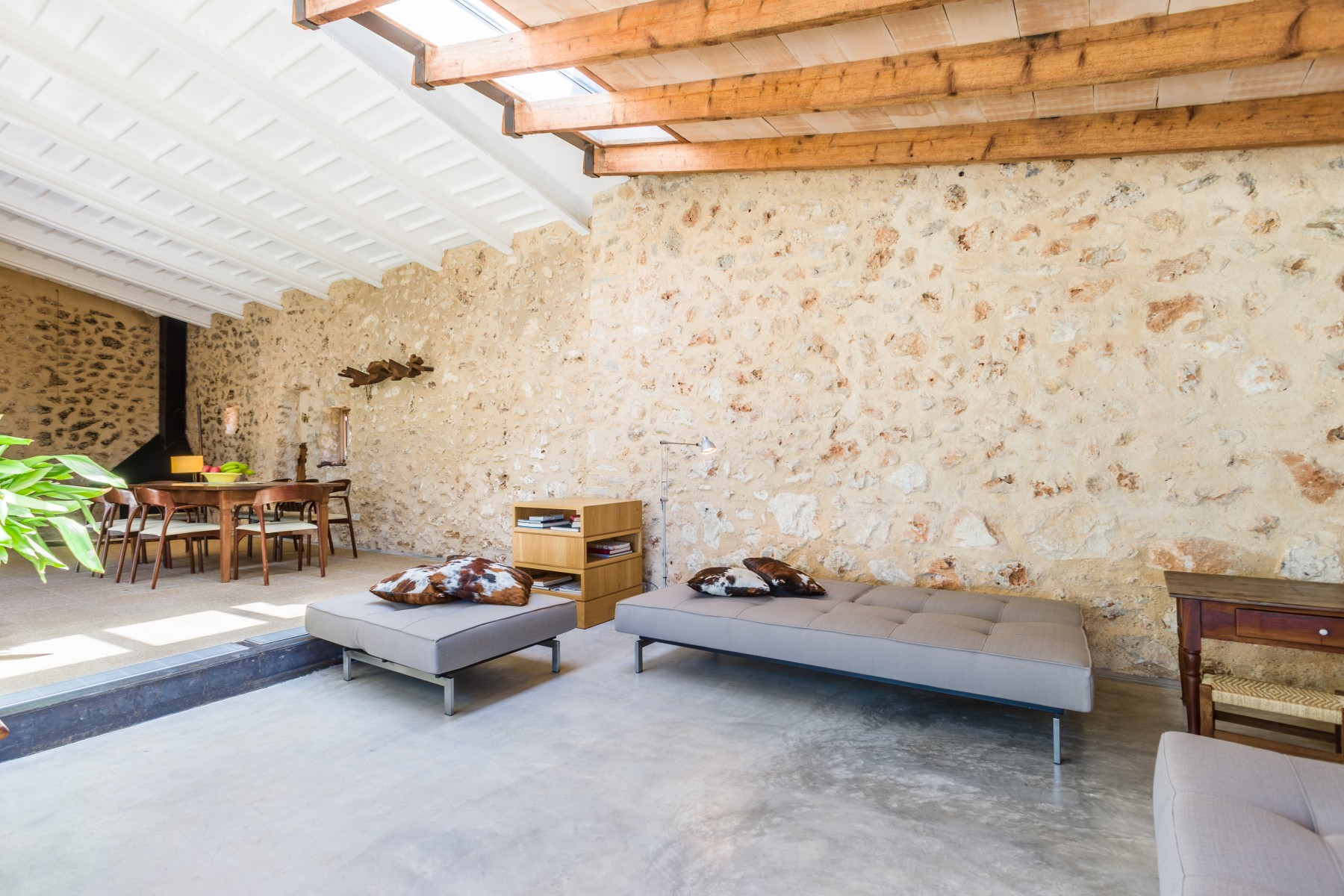 Terraces, pool & BBQ for cozy barbecues: The nicest thing about the houses in the south but is simply always the fact that you can stay outdoors for hours. Is there anything more beautiful than to start the day with a breakfast on the terrace, during the day stay by the pool in the sun or in the shade, only to finish a perfect day after a refreshing shower with a cozy barbecue and a glass of wine . The different terrace areas are suitable for this purpose perfectly. And at one of the many summer nights you have the opportunity to contemplate the Majorcan starry sky. A highlight of the finca 'L'Hort Verd’ is the large pool which is embedded in this little oasis and the dining area on the exterior, a sort of pavilion with a gorgeous big table for larger companies, for a typical southern food with family and friends in this so charming authentic and rustic environment.