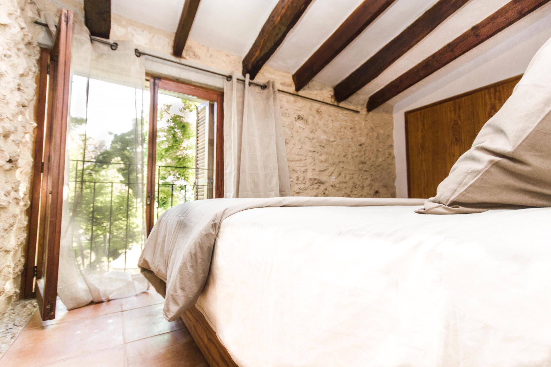 L'Hort Verd is a renovated vintage-style villa conveniently located in the center of the island, just 800 meters away from Sencelles, the village that disposes of all necessary services like supermarket and baker, as well as cafeterias and restaurants is easily reached on foot. The small picture-pretty village of Biniali is just 4 km away, the next larger town of Inca is called with restaurants, boutiques, shops, the leather town 10 Km and the port city of Palma with its 'myriad' shopping and cultural activities is equally quickly in 20 minutes by car to reach. The landscape in the vicinity of the house is dominated by the vineyards of some of the most important wineries of the island.